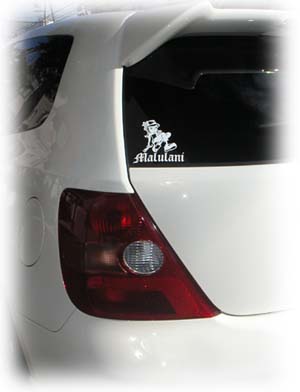 ■リヤウインドウに■ バックがほぼ黒なので、白のステッカーがよりくっきりとして見えますね。信号待ちで後ろの車の視線を浴びること間違いなしです。駐車場でもホント、見つけやすくなって便利です。 |